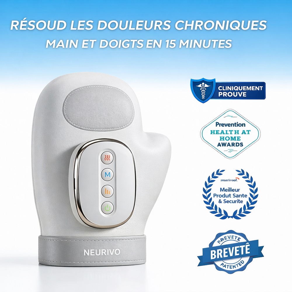 Soulagez instantanément les douleurs et la raideur des mains en quelques minutes, et éliminez les douleurs liées à l'arthrite, les engourdissements du canal carpien et la tendinite grâce à un soulagement sans fil à domicile.